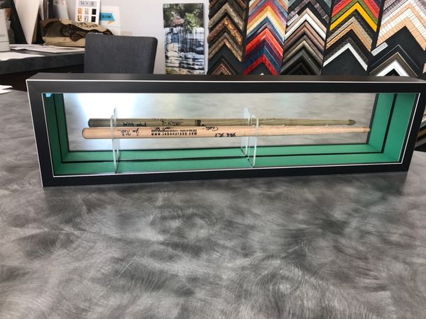 If there’s one thing you get with Scott Frame and Art it’s custom. Our business is all about finding solutions that meet your needs and exceed your creative vision. We have done it all! You come to us with a stained glass window and we give you back a stained glass window with a custom LED backlight so you can experience the Sainte-Chapelle in your own home. You give us a signed drumstick and we give you back a drumstick with custom clear acrylic mounts and a mirrored mat so that you can see the signatures on the back! You come to us and say you want a small frame and for the frame to match your walls so you don’t even see it, and we will go buy the same paint that’s on your walls to make your dreams come true. We’ve fabricated everything from displays for sculptures to custom floating shelves to lockable hinged frames. If you have an idea, Scott Frame and Art has a solution!