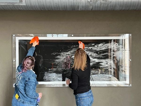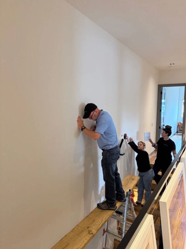 Our Installation team has over 25 years of art installation experience. From family photos to bowling balls to sculptures, our installers have done it all. We have installed artwork on all kinds of surfaces inside and out including stone, tile, and even steel! Whether we're hanging your art on the wall, or installing it on the ceiling or the floor, you will have peace of mind that it will be secure and professionally presented. Our mission is to make sure your art shines and your space becomes your own personal gallery.